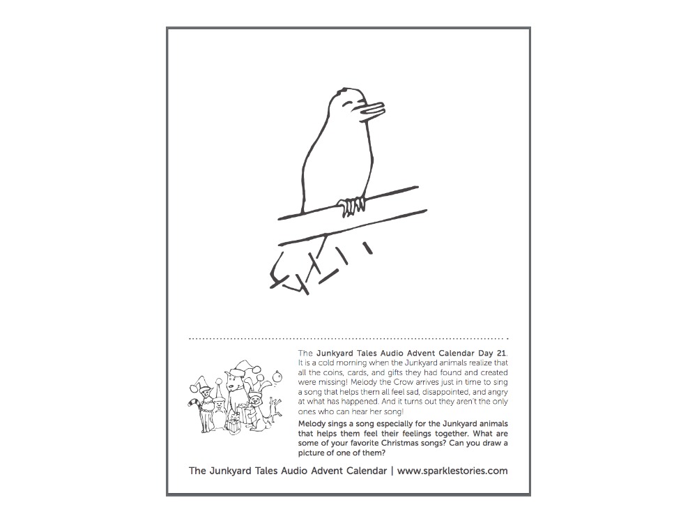 Junkyard Tales Audio Advent Calendar Printable Coloring Page: Day 21- Melody Crow
