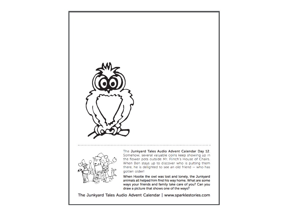Junkyard Tales Audio Advent Calendar Printable Coloring Page: Day 12 – Hootie