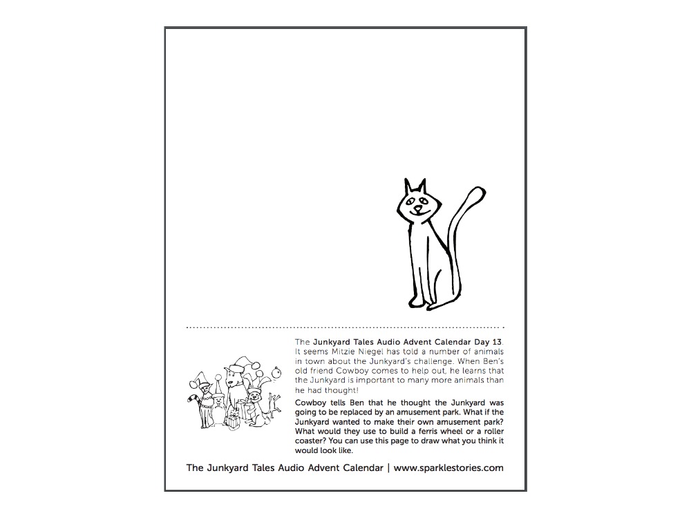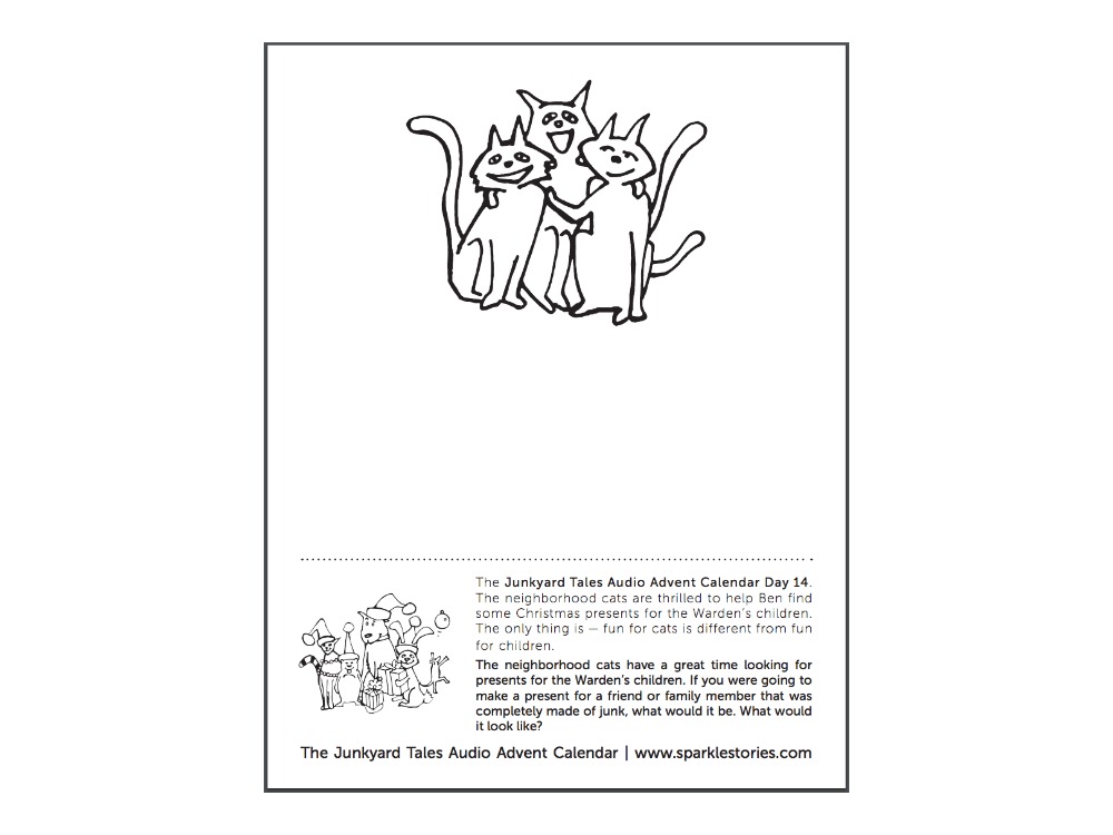 Junkyard Tales Audio Advent Calendar Printable Coloring Page: Day 14 – Cats