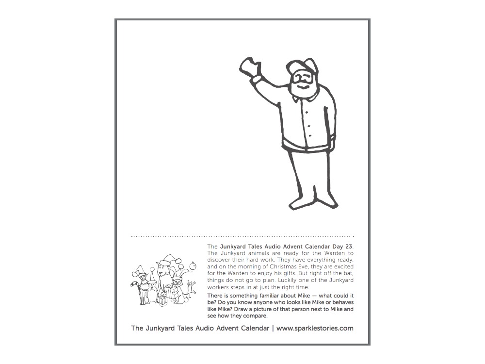 Junkyard Tales Audio Advent Calendar Printable Coloring Page: Day 23- Mike Steps In