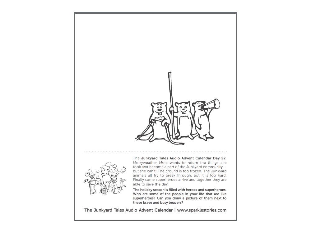 Junkyard Tales Audio Advent Calendar Printable Coloring Page: Day 22- Beavers