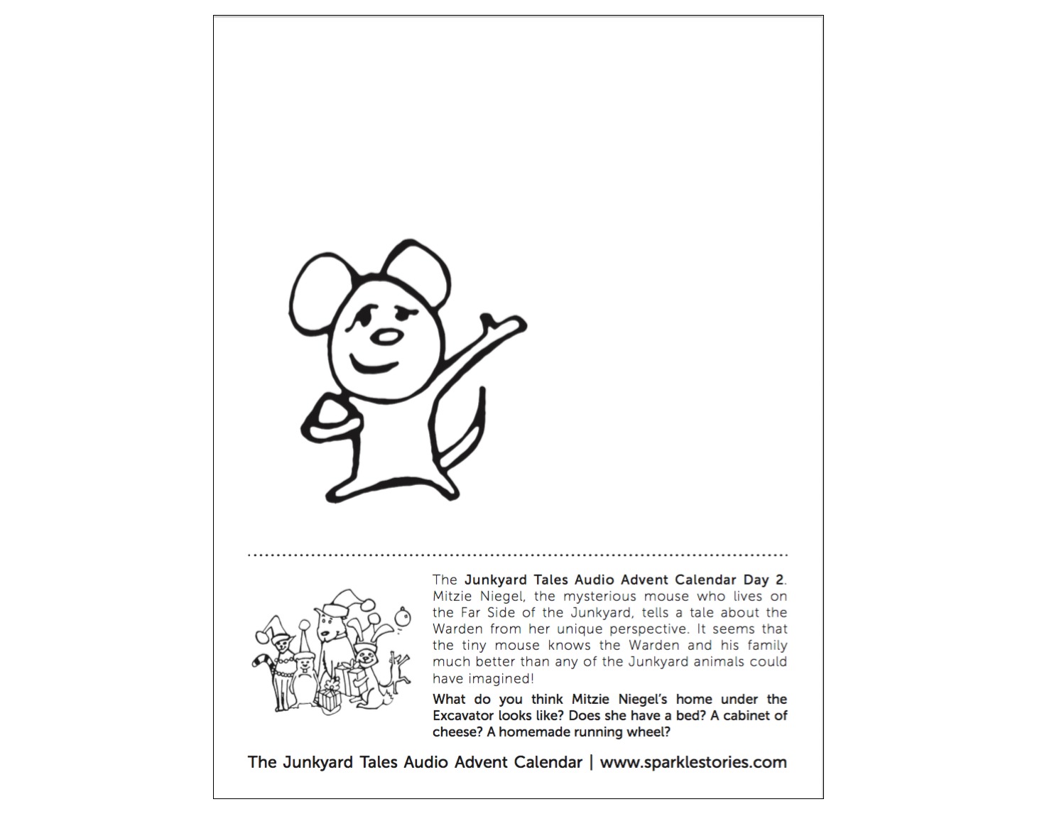Junkyard Tales Audio Advent Calendar Printable Coloring Page: Day 2 – Mitzie Niegel