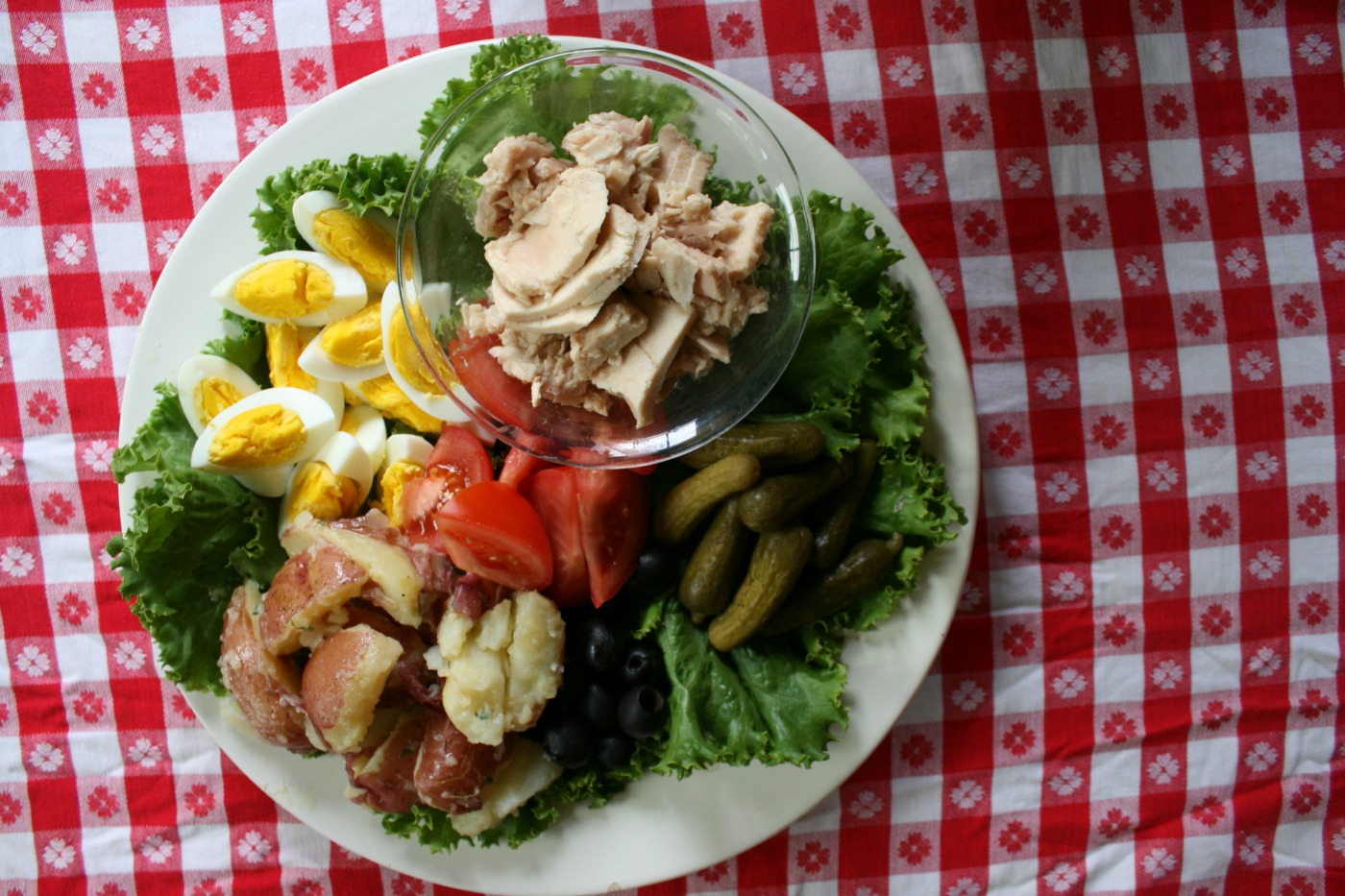 Martin and Sylvia enjoy this Summer Salad in the story "Night Magic." It’s based on a Niçoise salad — a lovely plate of greens topped with a variety of good things: traditionally tuna, marinated green beans, potatoes, and anchovies.