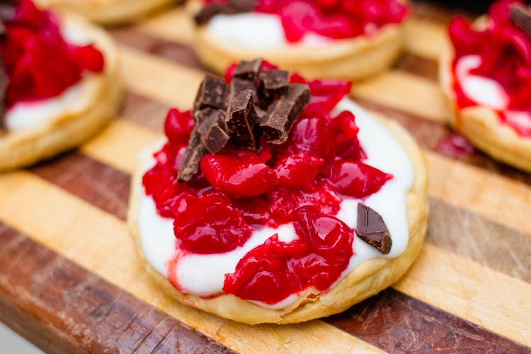 Combined with tangy, honey-sweetened goat cheese and a sprinkle of dark chocolate, these tarts look fancier than they are. And, by using mason jar lids as tart “pans” you avoid the need for extra kitchen gear. Easy, beautiful, delicious--in short, these sour cherry tarts are a pretty perfect early summer dessert!