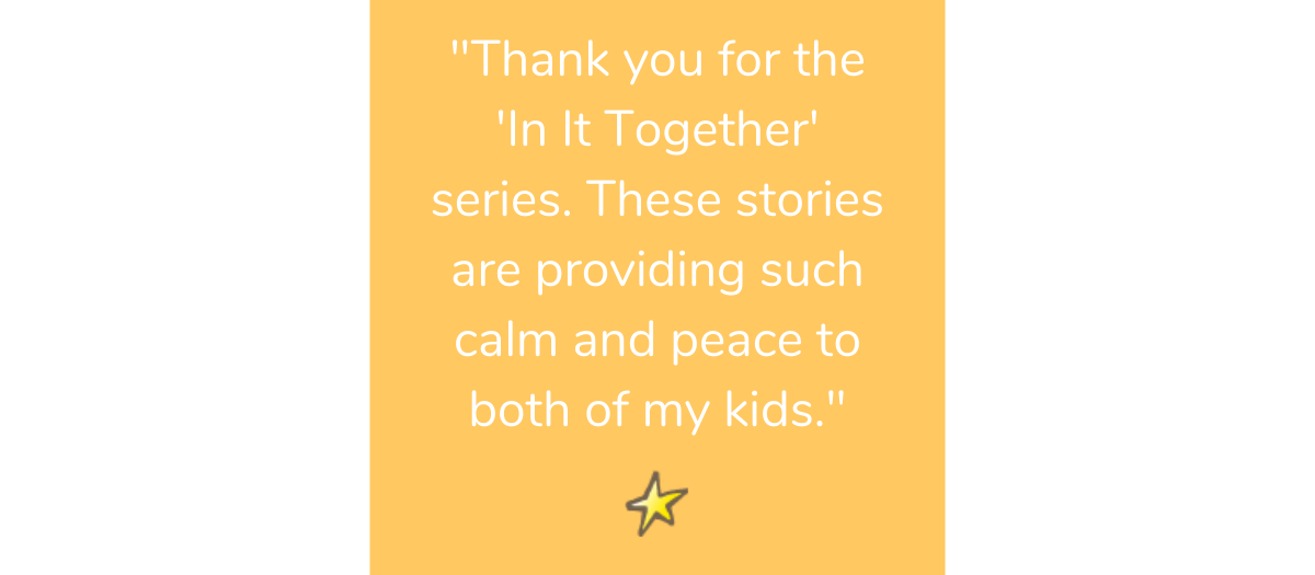 "Thank you for the In It Together series. These stories are providing such calm and peace to both of my kids. My 6-year-old keeps remarking on how similar the characters’ experiences are to his."