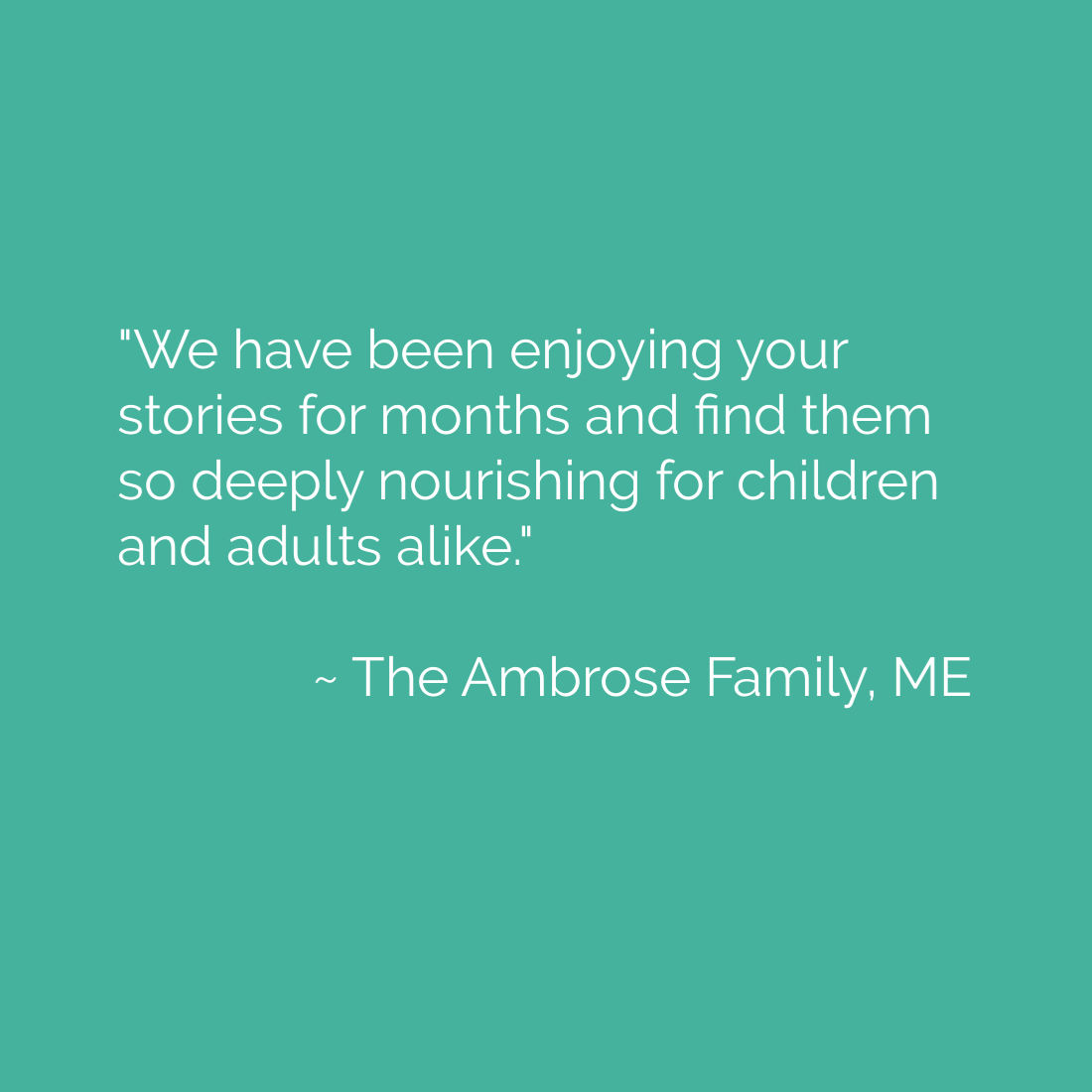 "We have been enjoying your stories for months and find them so deeply nourishing for children and adults alike." ~ The Ambrose Family, ME