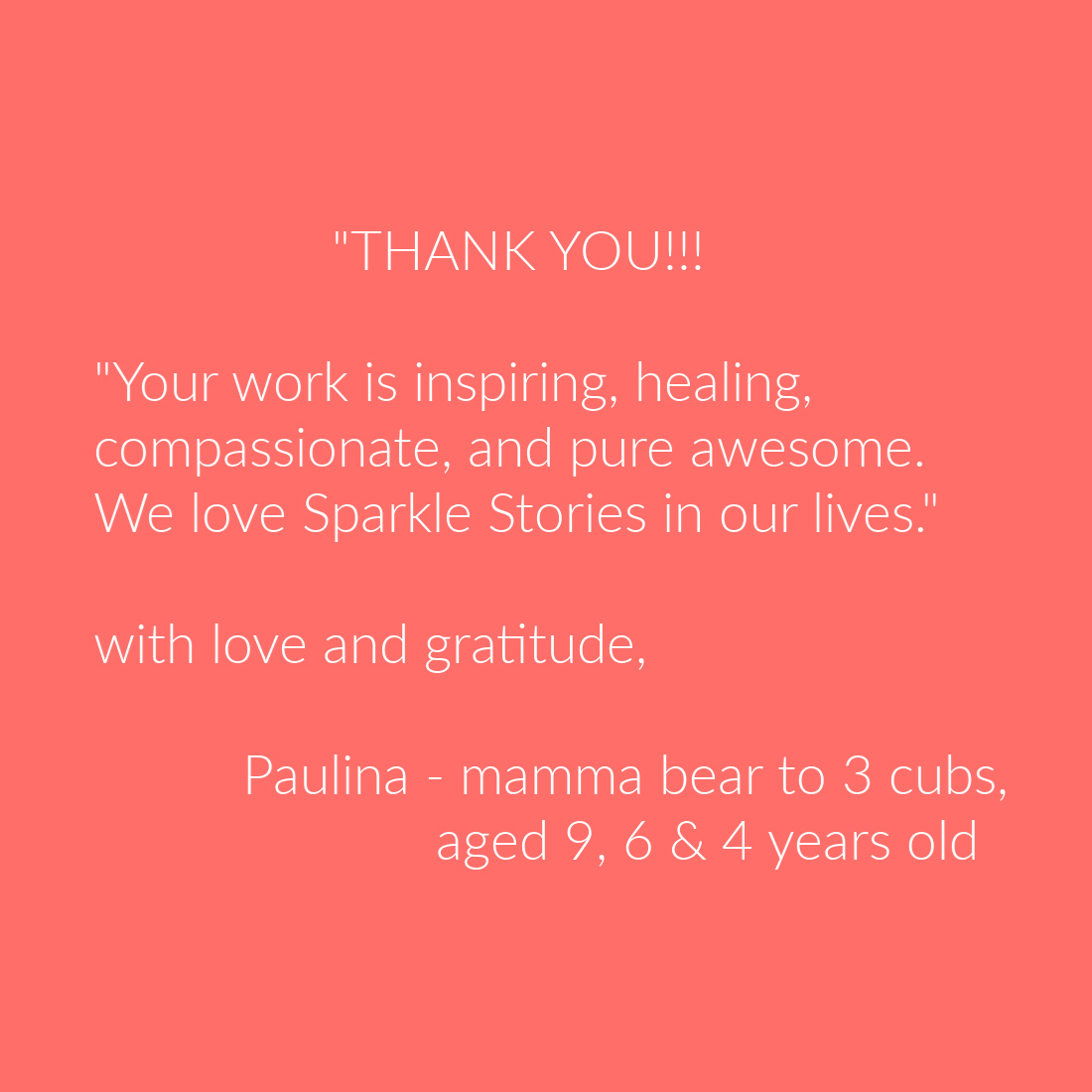 “Your work is inspiring, healing, compassionate, and pure awesome. We love Sparkle Stories in our lives.”