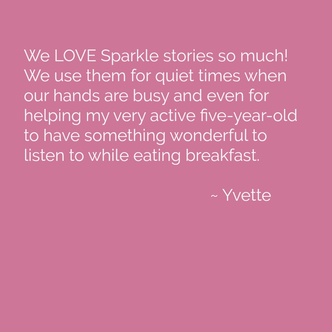 We LOVE Sparkle stories so much! We use them for quiet times when our hands are busy and even for helping my very active five-year-old to have something wonderful to listen to while eating breakfast. Martin and Sylvia are wonderful characters for my child to hear about as they are also homeschooled in a Waldorf-inspired style. My little one loves to hear about their adventures!!