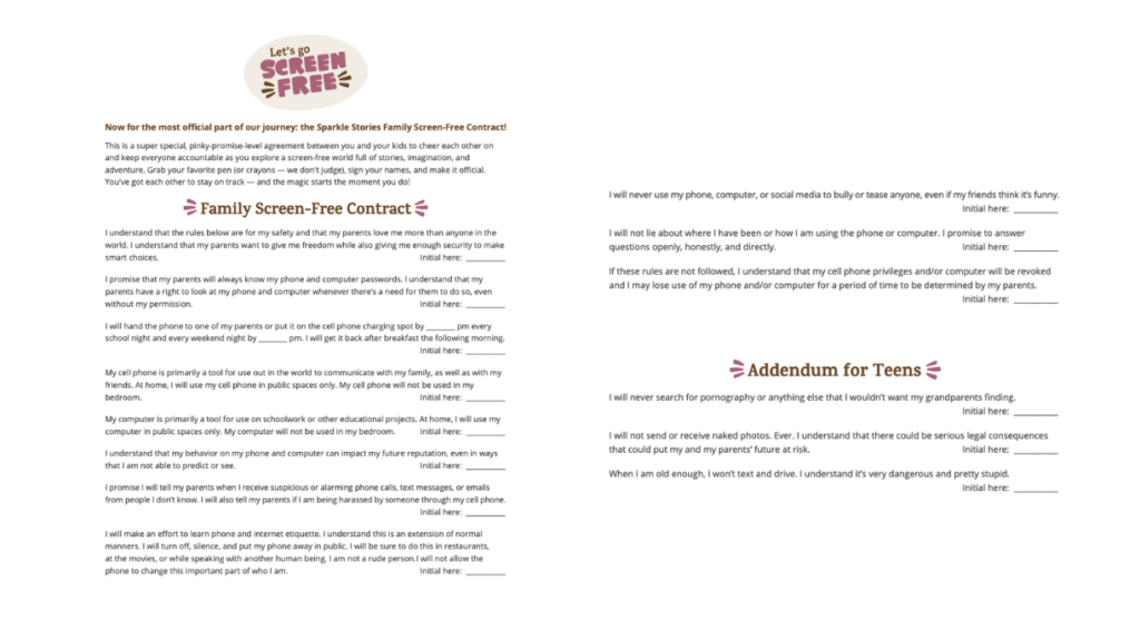 Think of it less like a digital detox and more like a family adventure. The guide walks you through everything from understanding why less screen time can be such a game-changer (spoiler: the research is pretty compelling!) to planning your experiment, holding a family meeting, and even creating your very own Family Screen-Free Contract — because making it official just makes it more fun. There’s even a whole section on surviving the tricky moments — because yes, there will be a moment when someone dramatically declares they’re “so bored.” We’ve got you covered.