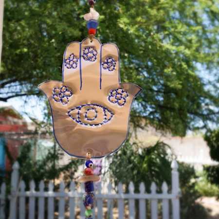 Hamsas are often decorated with stones and jewels. In this case, I’ve decorated it using a sharpie marker. The eye is another symbol used to ward off back luck.