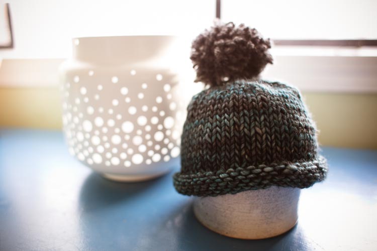 Whether you’re nesting yourself or you know someone who is, this little hat is adorably sweet on a new baby. The purled brim is snug enough to stay on, yet also stretchy enough to accommodate sometimes hard-to-size newborn heads. Using bulky yarn, it knits up in an hour or two and would make a great project for a newer knitter trying to get started with double-pointed needles. The pompom for the top is optional, but it’s so cute bobbling along on top of a tiny head that I highly recommend it.