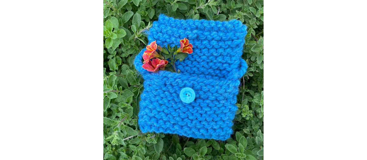 You now have a rectangle! Fold it the way you want it, making both a pocket and a flap. Sew up the side seams with a whip stitch, using the tail of yarn left over from binding off (if it’s long enough).