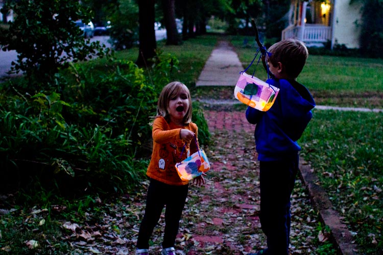 Whether you take part in an organized lantern walk in November or you just make these lanterns for an impromptu march around your block, I hope you get a little glow from the rainbows of light they create.