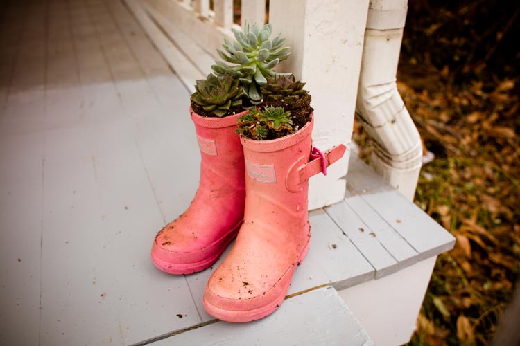 rainy boots "hens and chicks" planters 9 |www.sparklestories.com| at home with martin & sylvia