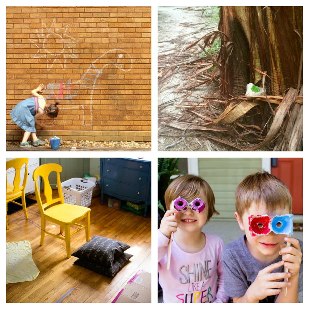 All you need for this is a garden wall or driveway and some chalk. Drawing on a huge scale is great for moving not only your body, but eyes and mind as well!