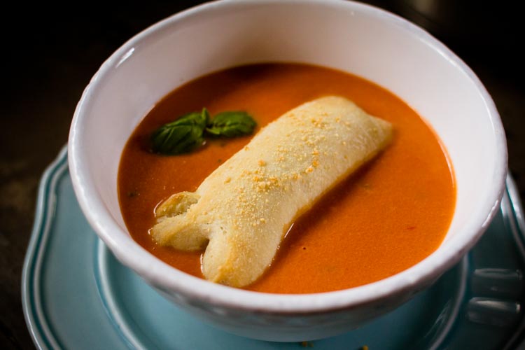 Creamy Tomato Soup with Cheesy “Bone” Breadsticks