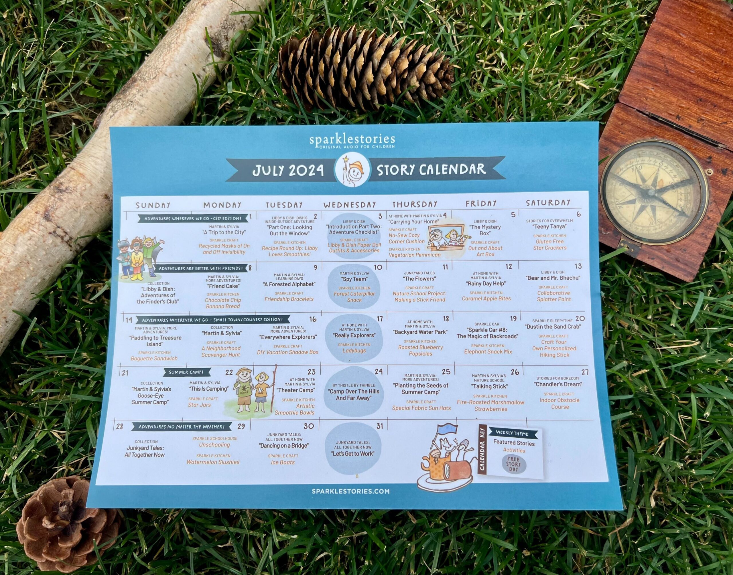 Who’s ready for an adventure? There’s nothing like the spaciousness of summer to inspire little ones to explore new spaces, tackle mighty quests, and maybe travel near and far. Our July 2024 Story Calendar will help you plan joyful adventures and create lasting memories for your whole family. Join our Sparkle community as we explore the world around us — together!