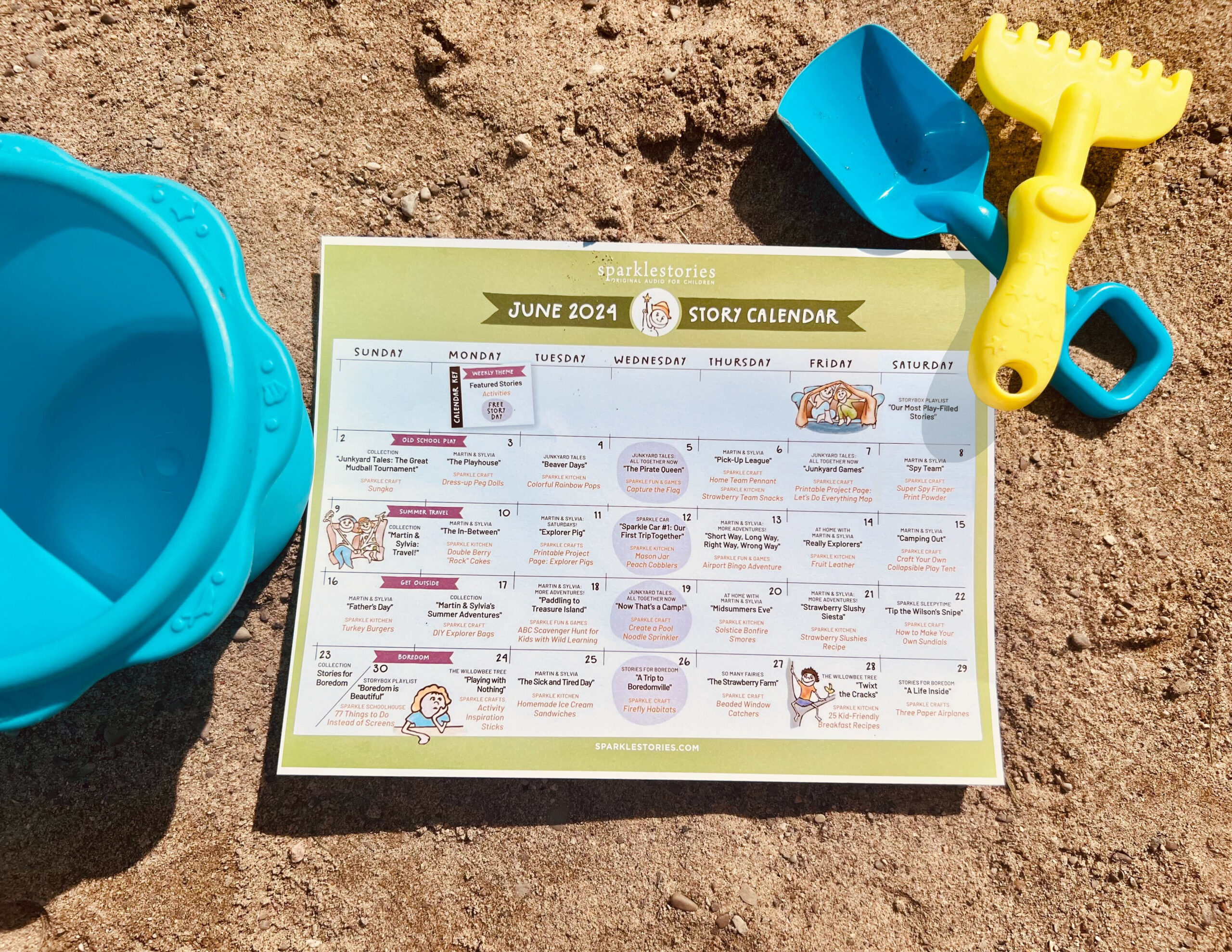 June is busting out all over! Summer has arrived in the northern hemisphere, bringing longer days, warm breezes, and the promise of sweet times with kiddos. At Sparkle Stories, we’re bursting with ideas for embracing simple joys and a slower pace of life. Our June 2024 Story Calendar offers gentle guidance into a world of crafts, recipes, and stories that invite us to partake of these summer delights. Enjoy these June days of ease along with us!