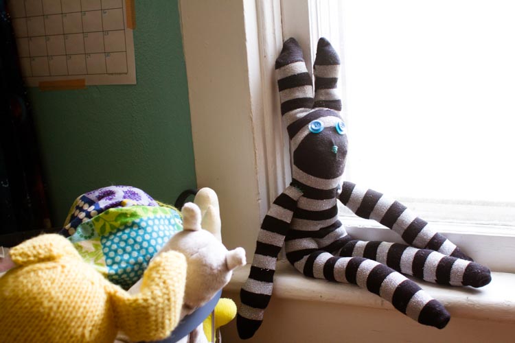 This week's craft is a good example of making do and mending. It uses something you might throw away — an old pair of socks — and makes it into a new toy for a child.