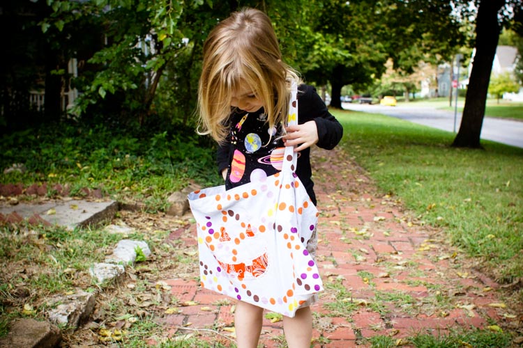 This cross-body trick-or-treat bag takes its inspiration from the pillowcases you may have used of yore but has a handy added design feature — a cross-body strap — that makes it easy to drop candy into the bag but hard to drop the whole thing on the sidewalk.