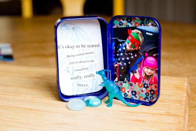 Made from an empty Altoids tin, this travel photo frame will let you bring your friends with you, along with a few other tidbits and words to help you feel brave.