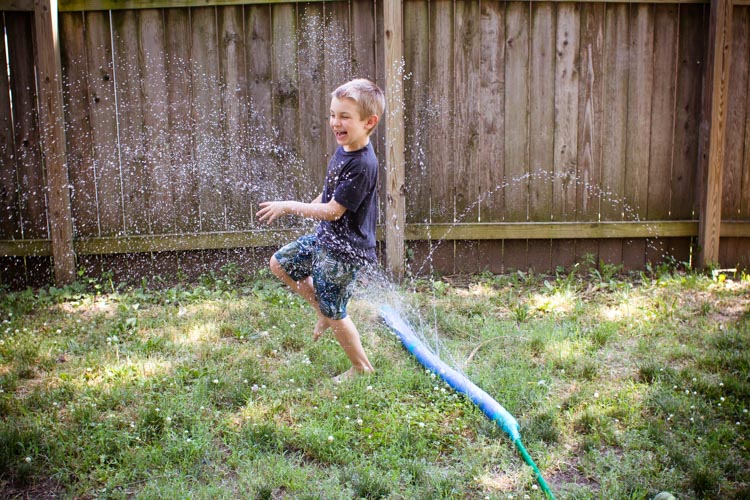A pool noodle sprinkler is a cool treat for all!