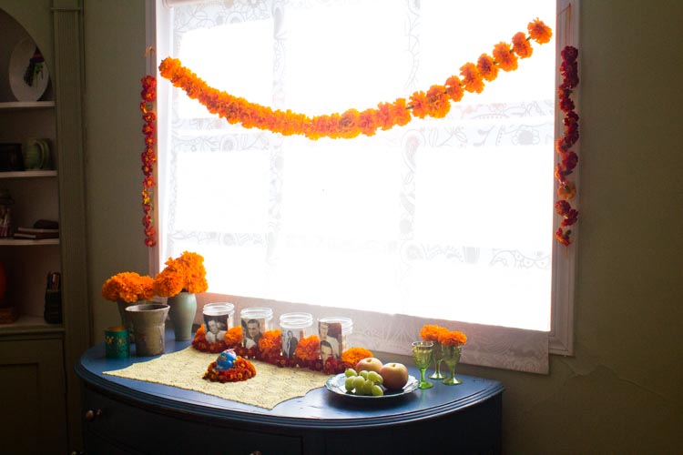 This story gives context to the Día de los Muertos or "Day of the Dead" festival celebrated in the Americas.The festival uses skeleton imagery and altars in which there are photographs of family and friends who had died.The tone is celebratory rather than grieving, but families who are sensitive about the subject of death should be advised.
