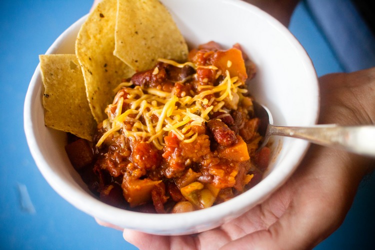 My favorite chili involves lots of canned goods, which are so much easier to keep on hand. It's also nearly vegetarian, with a butternut squash standing in admirably for the typical beef. Pop these ingredients into a pot, give it a stir, and enjoy the warm smell of it bubbling away!