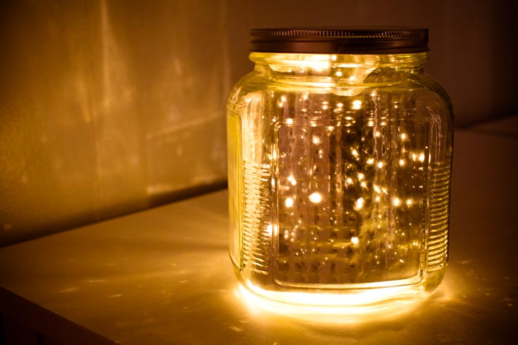These star jars will provoke quiet “oohs” and “ahhs” whenever you switch them on. The initial cutting with a box knife is best done by an adult, but by using a thin, disposable cookie sheet to make the heart of the lantern, a supervised pre-schooler can quickly make a whole galaxy of stars to admire.